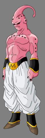 Super Buu (魔人ブウ 悪, Majin Bū Aku; lit. "Majin Boo Evil") is the end result of Evil Buu eating the Good Buu turned into chocolate. This new Majin Buu has a tremendous increase in power and has an increased mental capacity. In this form, Buu has very little patience and has extremely dangerous fits of anger, even holding the power to rip through dimensional walls if he gets angry enough.